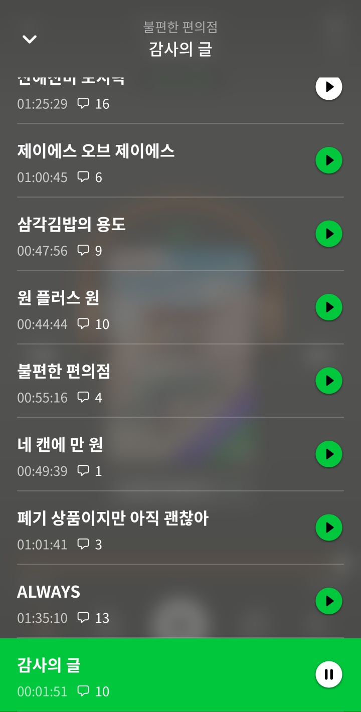 운전을 많이 하다 보니 유튜브 매일 남이 선곡해 놓은 것들 습관, 버릇처럼 눌러 놓고 다녔는데 책을 들고 읽을 상황이 안되어서 최근 선택한 오디오 북 시작 하게 되었는데, 생각 이상으로 너무 좋은 것 같습니다. 앞으로도 많은 책들 실제 읽는 것은 아니고 듣게 되는 새로운 독서이지만 즐겁게 즐기려고 합니다.
