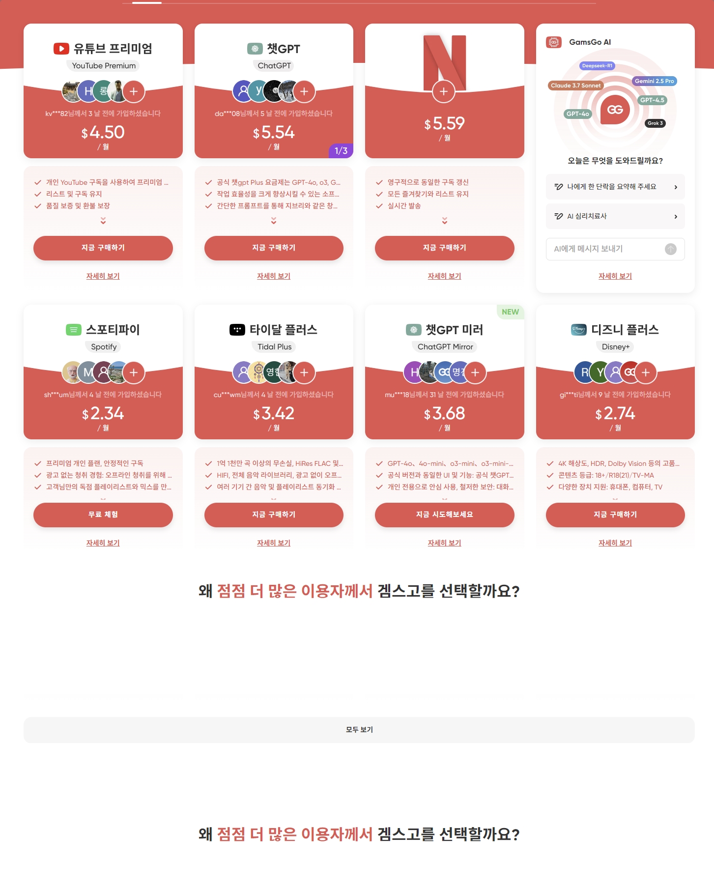 AI 관련 구독형 서비스(예: ChatGPT, 퍼블리시티 등)를